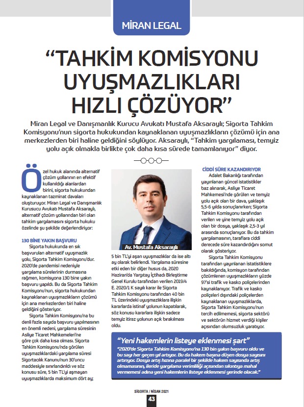 Miran Legal olarak kurucu avukatımız Av. Mustafa Aksaraylı’ya uzmanlıkları sebebiyle alanında öncü basın kuruluşları teveccüh göstermektedir. Birçok basılı ve çevrimiçi basın kuruluşu Sayın Aksaraylı’nın uzman görüşüne danışmaktadır. Bu alanda son iş birliklerimizden biri olan saygın basın kuruluşu Capital’in Nisan sayısının özel sayısında yer aldık.